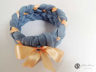 Bracelet for Marthalina (special order). Light blue zpagetti together with blue and yellow ribbons. I have to make more of this model in different colors. They will be great! I've already bought 3 new zpagetti yarns. There will be more colors on felt&ribbon ;)!