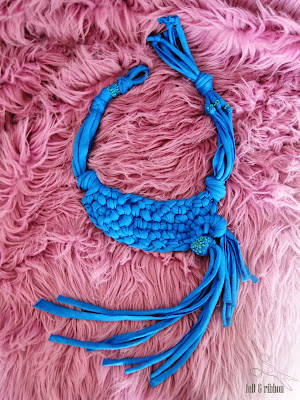 When my Indonesian friend - Marthalina had ordered this bracelet I couldn't refuse to make one (even I didn't plan make new models). I was very happy because it means that things I make are not so bad ;). After last exam I could finally start making this special order. You can evaluate results below. The order's requirements were: maroon ribbon, blue yarn and...