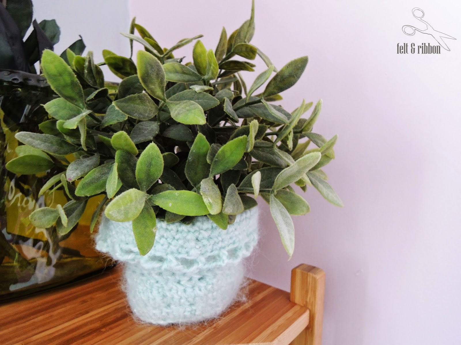 Na koniec prezetnuję dzierganą, włochatą osłonkę na doniczkę. Włóczkę kupiłam w second handzie za grosze. A tak ładnie wygląda!